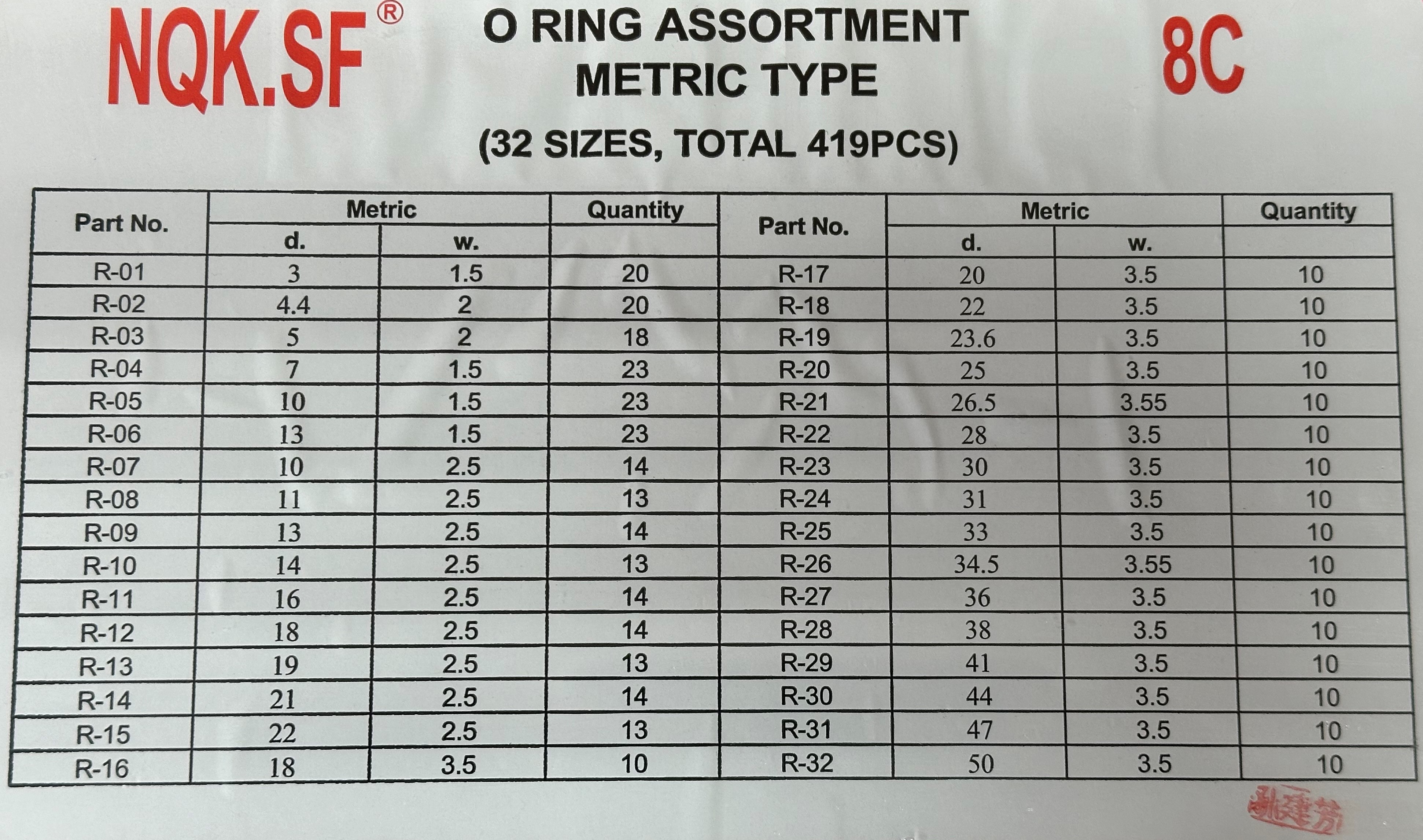 3.00х1.50 - 20 шт; 4,40х2.00 - 20 шт; 5.00х2.00 - 18 шт; 7.00х1.50 - 23 шт; 10.00х1.50 - 23 шт; 13.00х1.50 - 23 шт; 10.00х2.50 - 14 шт; 11.00х2.50 - 13 шт; 13.00х2.50 - 14 шт; 14.00х2.50 - 13 шт; 16.00х2.50 - 14 шт; 18.00х2.50 - 14 шт; 19.00х2.50 - 13 шт; 21.00х2.50 - 14 шт; 22.00х2.50 - 13 шт; 18.00х3.50 - 10 шт; 20.00х3.50 - 10 шт; 22.00х3.50 - 10 шт; 23,50х3.5010 шт; 25.00х3.50 - 10 шт; 26,50х3.50 - 10 шт; 28.00х3.50 - 10 шт; 30.00х3.50 - 10 шт; 31.00х3.50 - 10 шт; 33.00х3.50 - 10 шт; 34,50х3.50 - 10 шт; 36.00х3.50 - 10 шт; 38.00х3.50 - 10 шт; 41.00х3.50 - 10 шт; 44.00х3.50 - 10 шт; 47.00х3.50 - 10 шт; 50.00х3.50 - 10 шт